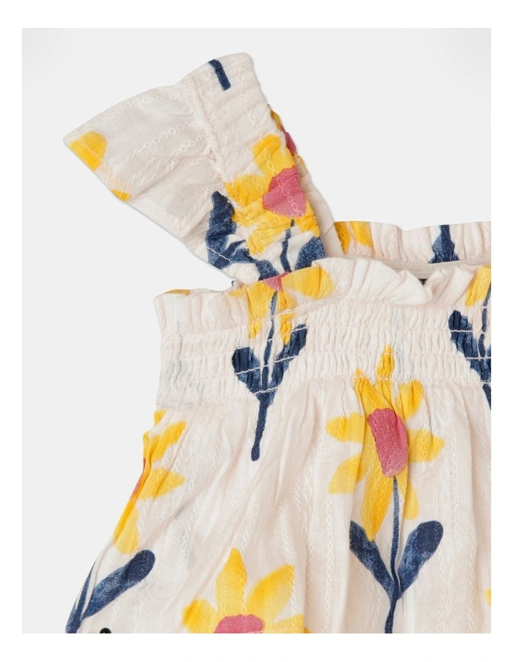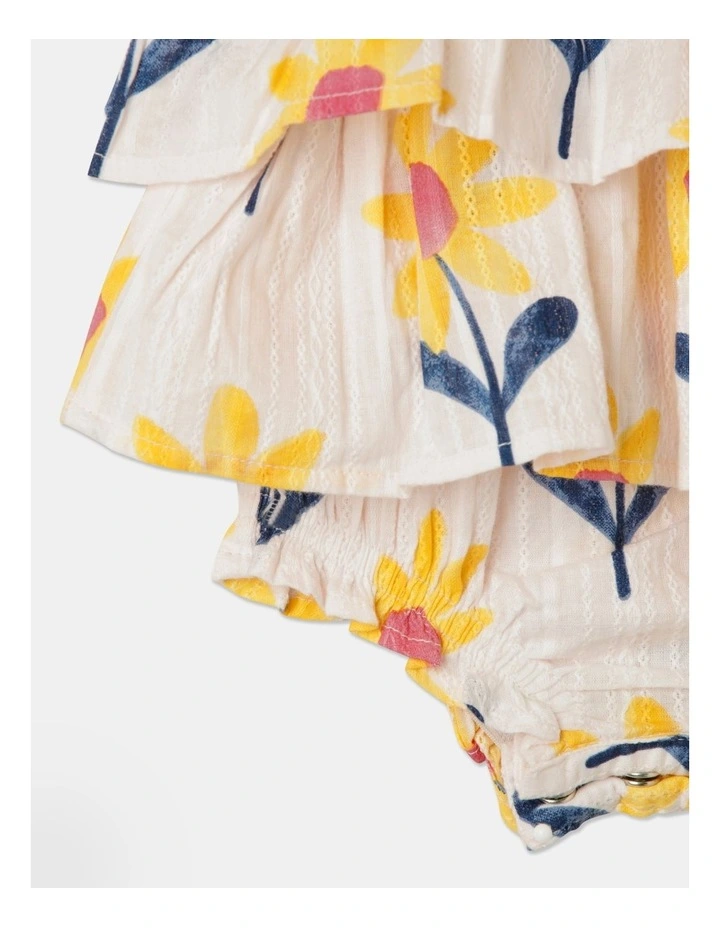 - Double layer frill across neckline and leg opening