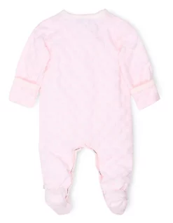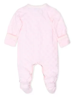 This pink jacquard self spot romper has long sleeves and long legs with feet, front press stud opening for ease of dressing while being soft and stylish for your little one. 65%/35% COTTON/POLYESTER JACQUARD KNIT JERSEY