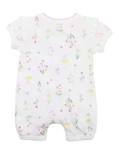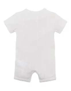 This unisex pink jacquard self spot romper has short sleeves and short legs, front side zip opening for ease of dressing while being soft and stylish for your little one. 65%/35% COTTON/POLYESTER JACQUARD KNIT JERSEY