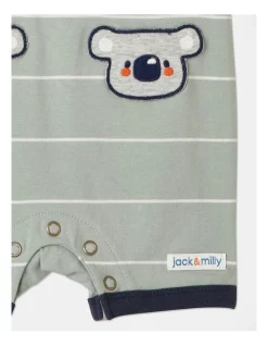 Jack & Milly Sam Stripe Romper in Light GreenΒ