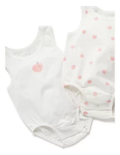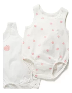 – Pack includes one of our signature hand drawn peach print bodysuits and one cream bodysuit with a single peach fruit on the front