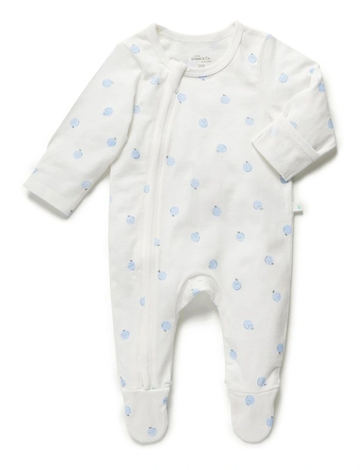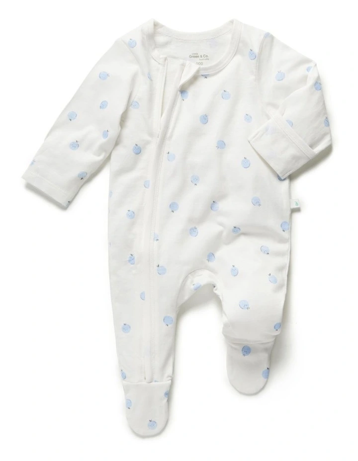 Features: Two-way zip for easy dressing. With foot to a size 0, size 1-2 Footless. In built mittens sizes NB-000