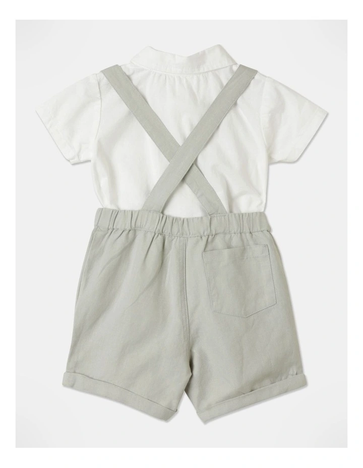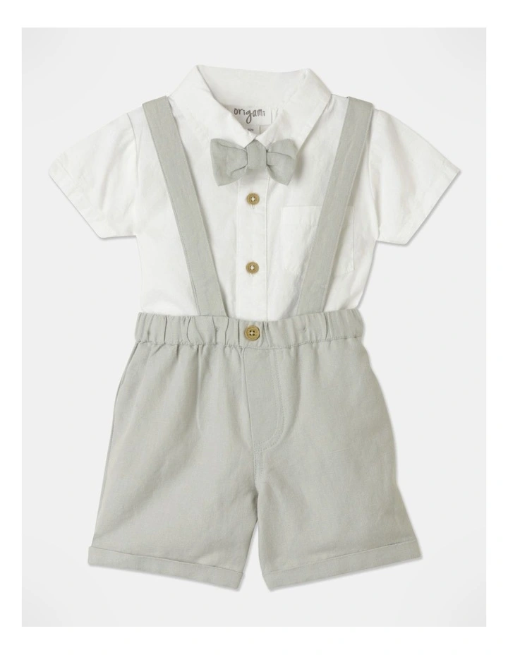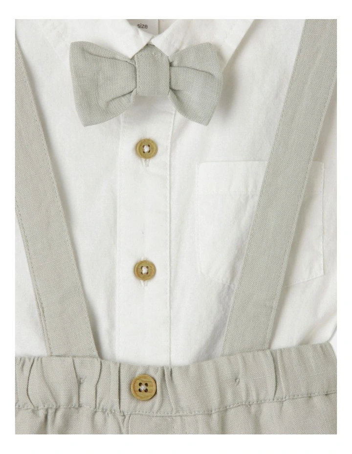 Fabrication: Shirt: 100% Cotton. Short/bow Tie/straps: 70% Cotton/ 30% Linen