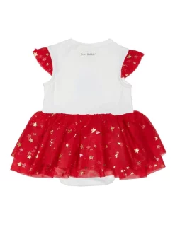 With dainty gold stars and red tulle, this fabulous bodysuit is made with celebration season in mind, whether its Christmas family lunch or hopping about the park this will take your little bunny through all lifes joyous events.