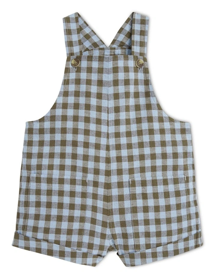 These classic style overalls are designed with a timeless check print. Horn buttons dot the bib fastening and side opening, and the overalls feature front patch pockets and rolled cuffs.