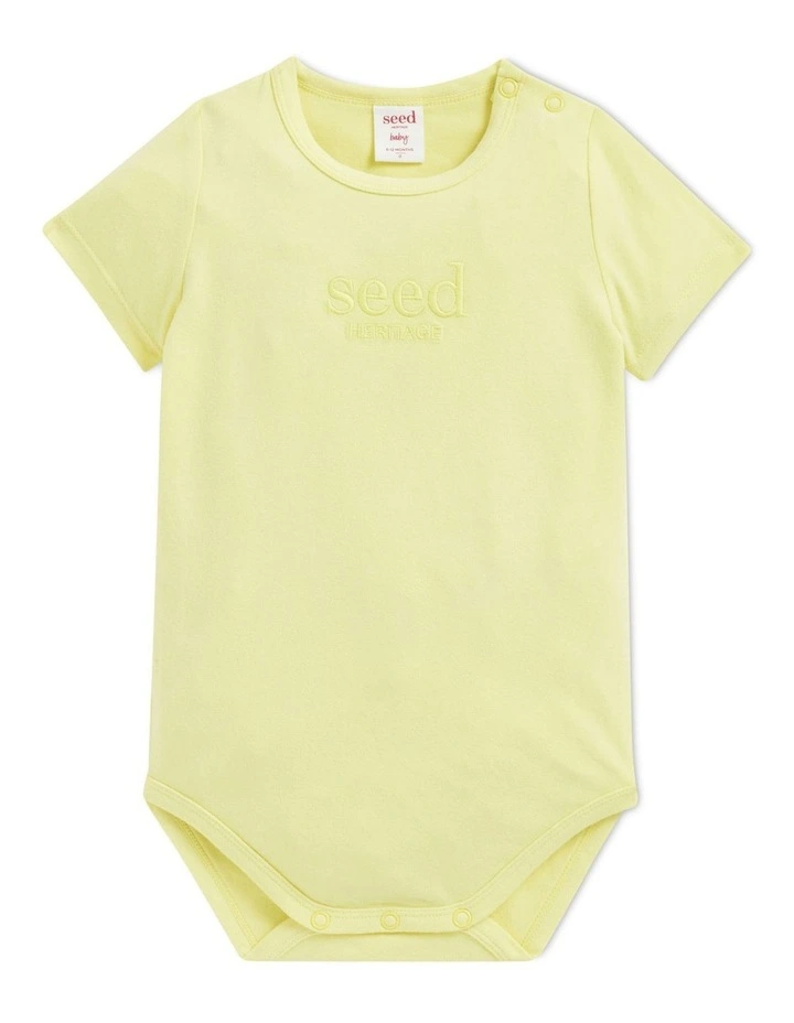 Crafted from an ultra-soft cotton blend, this short sleeve bodysuit is a must have for any newborn. The iconic Seed Heritage logo is embroidered across the front of the bodysuit, which features snap fastenings at the neckline and gusset for quick and easy changes.