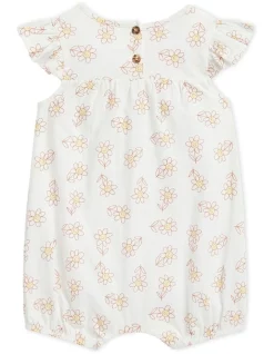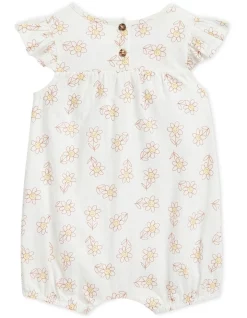 Crafted from 100% premium cotton, this romper is covered in a spring-inspired daisy print. With frilled sleeves, elasticated hems and a scooped neckline, this romper ensures a comfortable fit for your little one.
