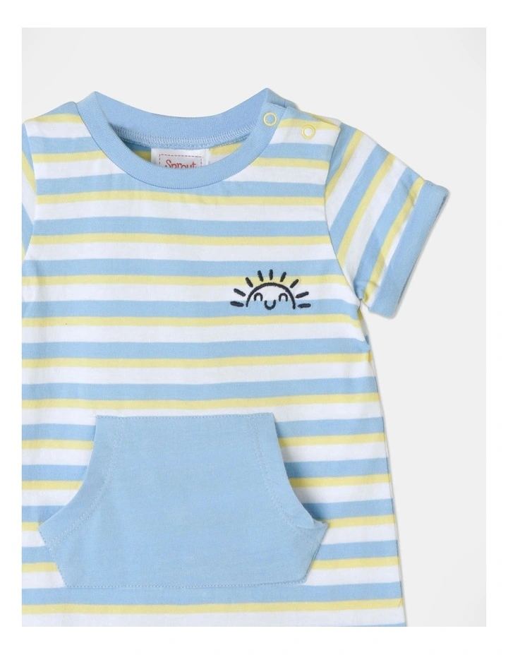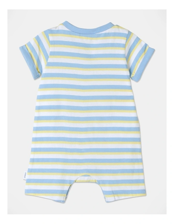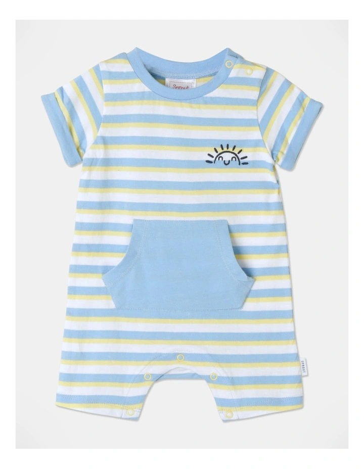 Sprout 3D Sun Applique Strip Romper in Baby Blue