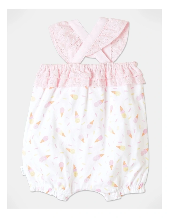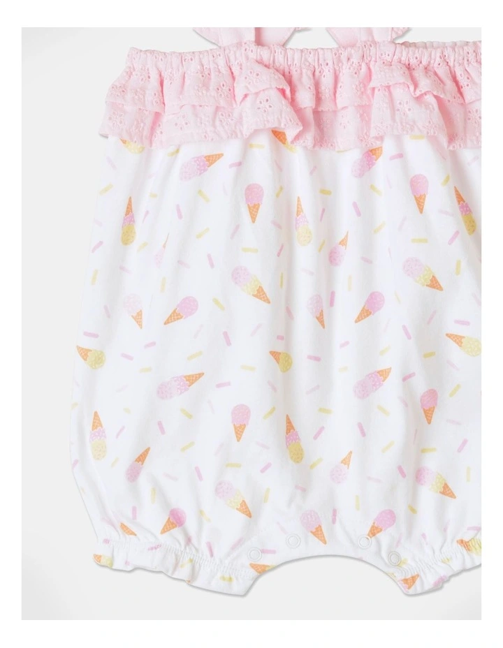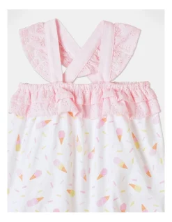 Fabrication: Main: 100% Cotton Jersey 160gsm Broderie Frills: 100% Woven Cotton Broderie. Straps: 100% Cotton Poplin 110gsm