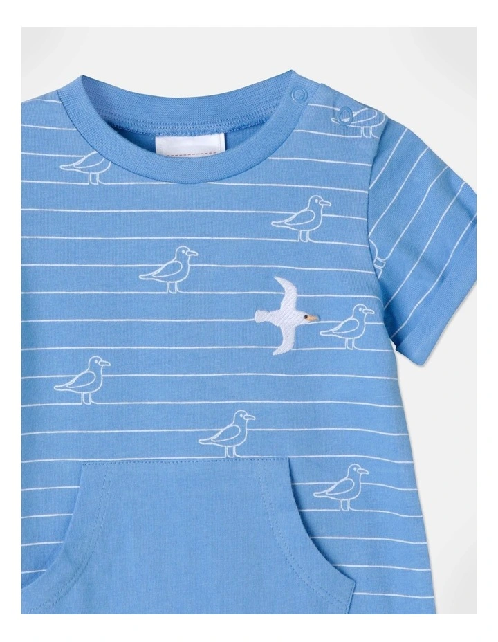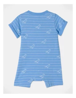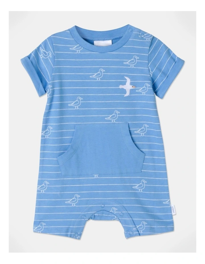 Sprout Stripe Seagull Romper in Bright Blue