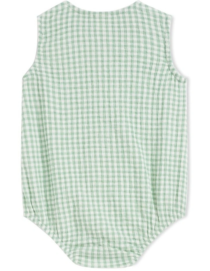 This classic gingham romper features a gingham pattern and a small patch pocket. Crafted from 100% cotton, it is comfortable and cool in warm weather.